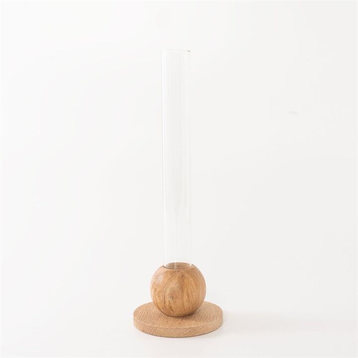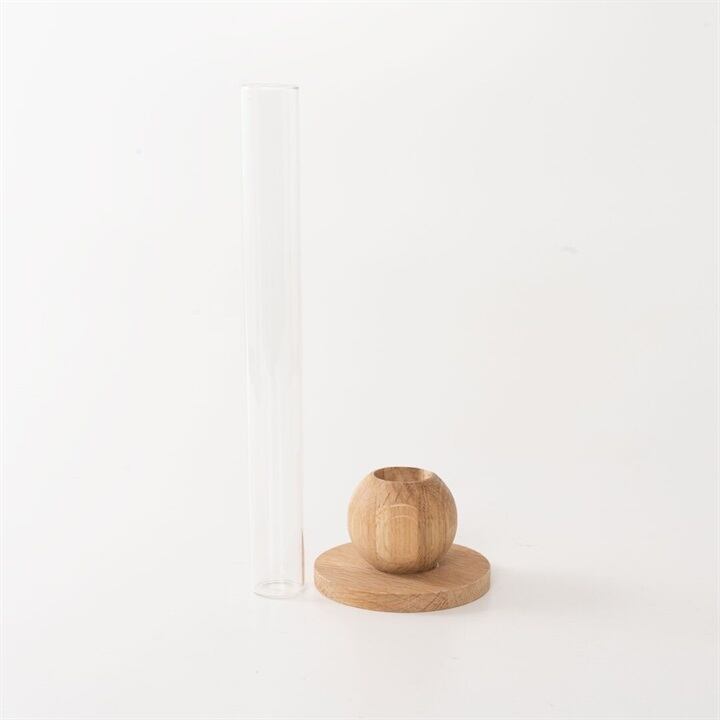 試験管と木の台座の組み合わせが人気の一輪挿しシリーズ。